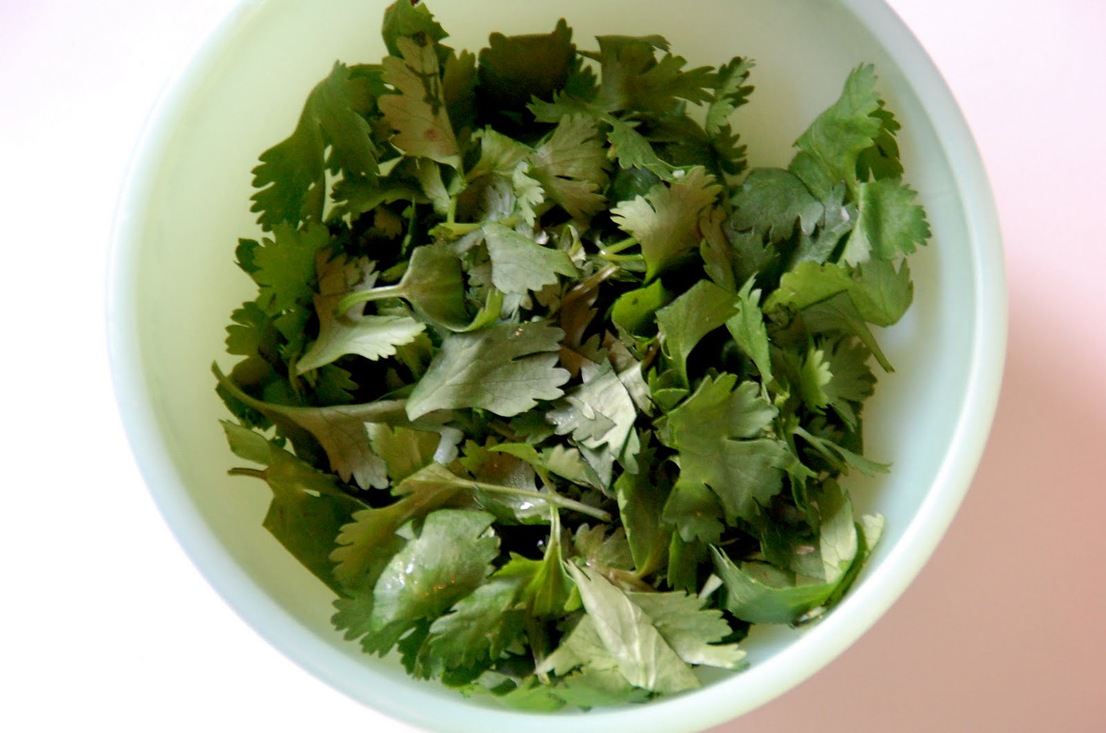 Toss in the coarsely chopped cilantro, about 1/4 - 1/2 cup.